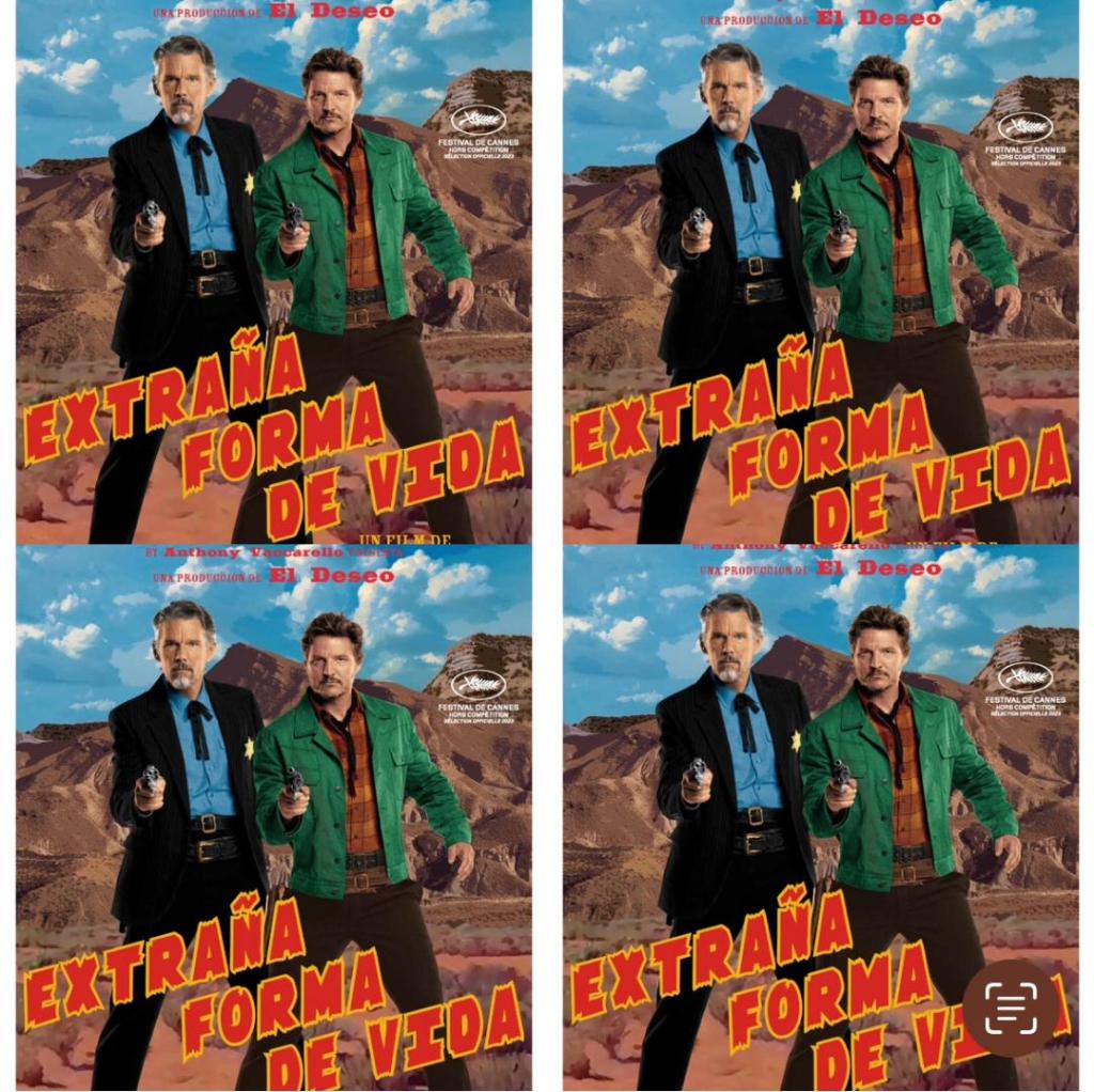 Entre sus nuevas aventuras/locuras está sus incursiones al mundo de los cortos. Casi a modo de universitario o joven creador en busca de un hueco en el medio audiovisual, el director manchego ha decido abandonar su zona de “confort” volviendo al origen de todo cineasta, al principio, a la casilla de salida: el cortometraje. Algo que inició con la muy estética, teatral y sentida, “La voz dormida”, para la que contó con la fantástica ayuda de Tilda Swinton, y al que vuelve de nuevo con este acercamiento al western, también en inglés, en compañía de otras dos grandes estrellas de Hollywood, los muy reconocidos Ethan Hawke y Pedro Pascal, llamado “Extraña forma de vida”. Esto es lo que siento en su visionado.