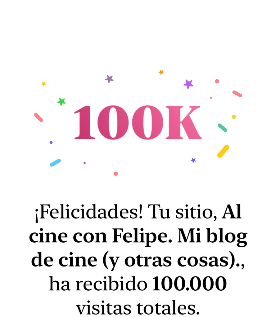 Hoy no escribo para hablaros de cine. No. Hoy mis palabras las dedico para daros las gracias. Esta semana mi blog alcanzaba las 100.000 visitas desde su creación y sólo puedo deciros mil y mil gracias. Gracias por estar ahí, por pasar por el blog y leer las más o menos acertadas ideas que pasan por mi alocada cabeza cuando me lanzo a esto de hablar de cine.